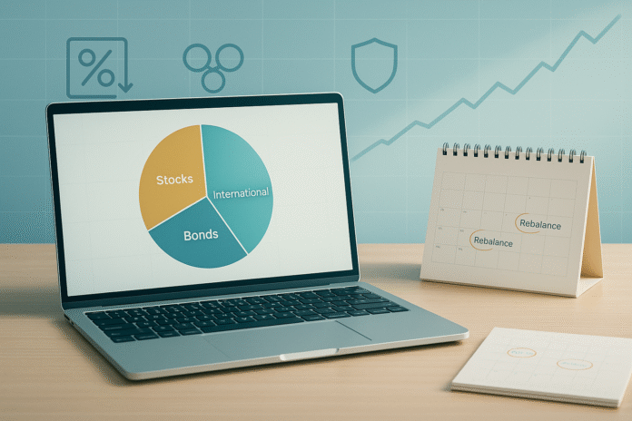 - Rebalance on a schedule. Once or twice a year, nudge back to your target percentages.
