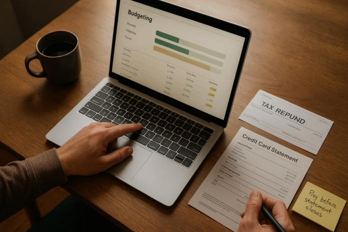 After you deploy the lump sum, lock in the benefits: keep minimums on auto-pay to protect your credit history, stop adding balances, and harness your lower utilization. Credit score models generally reward utilization below 30%, with under 10% often best; timing a pre-statement payment can help reported utilization immediately. Then redirect the freed-up cash flow into a repeatable payoff schedule or toward your emergency fund. Finally, calendar the next windfalls—annual bonus months, typical refund windows—so this becomes a system, not a one-off.