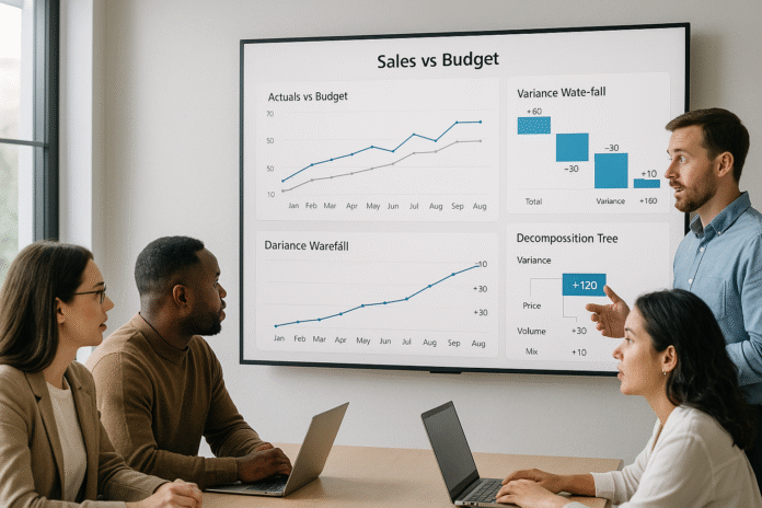 Monthly sales vs budget is less about a month-end report and more about a learning loop. When you standardize definitions, align timing, quantify price-volume-mix, and link everything to drivers, you move from after-the-fact commentary to forward-looking control. Add simple, trustworthy forecasting (ETS/ARIMA/Prophet), measure accuracy transparently, and keep a rolling 12–18-month view so the finance posture stays proactive. Finally, present the story visually—a variance waterfall and decomposition tree let leaders see cause-and-effect and commit to actions. If you adopt the 12-step cadence here, you’ll spend fewer cycles debating the number and more cycles changing it. Next step: build your PVM and GM waterfalls on last month’s data, refresh the rolling forecast, and schedule a 30-minute driver review with Sales and Supply.