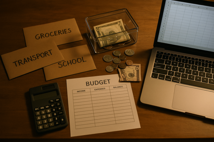 A household system fails if only one person understands it. Assign roles—one person manages the master template, another handles weekly counts, older kids can log their own pocket-money spends. Post category limits on the fridge or inside a cupboard door, and use color-coded envelopes to help everyone grab the right one. Consider a small lockbox for security and teach kids how to log amounts correctly (date, what, how much) before they take spending money out.