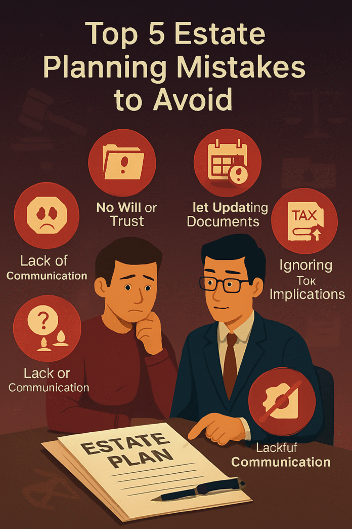 This article goes into great detail about the five most common estate planning mistakes that people make. You’ll get a better understanding of problems like putting things off, using old documents, tax problems, poorly managed trusts, and not keeping track of digital assets. If you learn how to avoid these common mistakes when planning your estate, you’ll not only save money and stress, but you’ll also make sure that every part of your legacy is handled with care and accuracy. We encourage you to use the practical tips in this guide to make an estate plan that really shows what you want and protects your loved ones now and in the future.