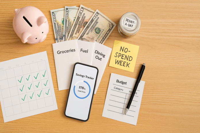 - Pick one challenge that fits your cash flow: weekly (52-week), daily (penny-a-day), monthly (envelopes), strict short burst (no-spend), or ongoing (auto-escalation).